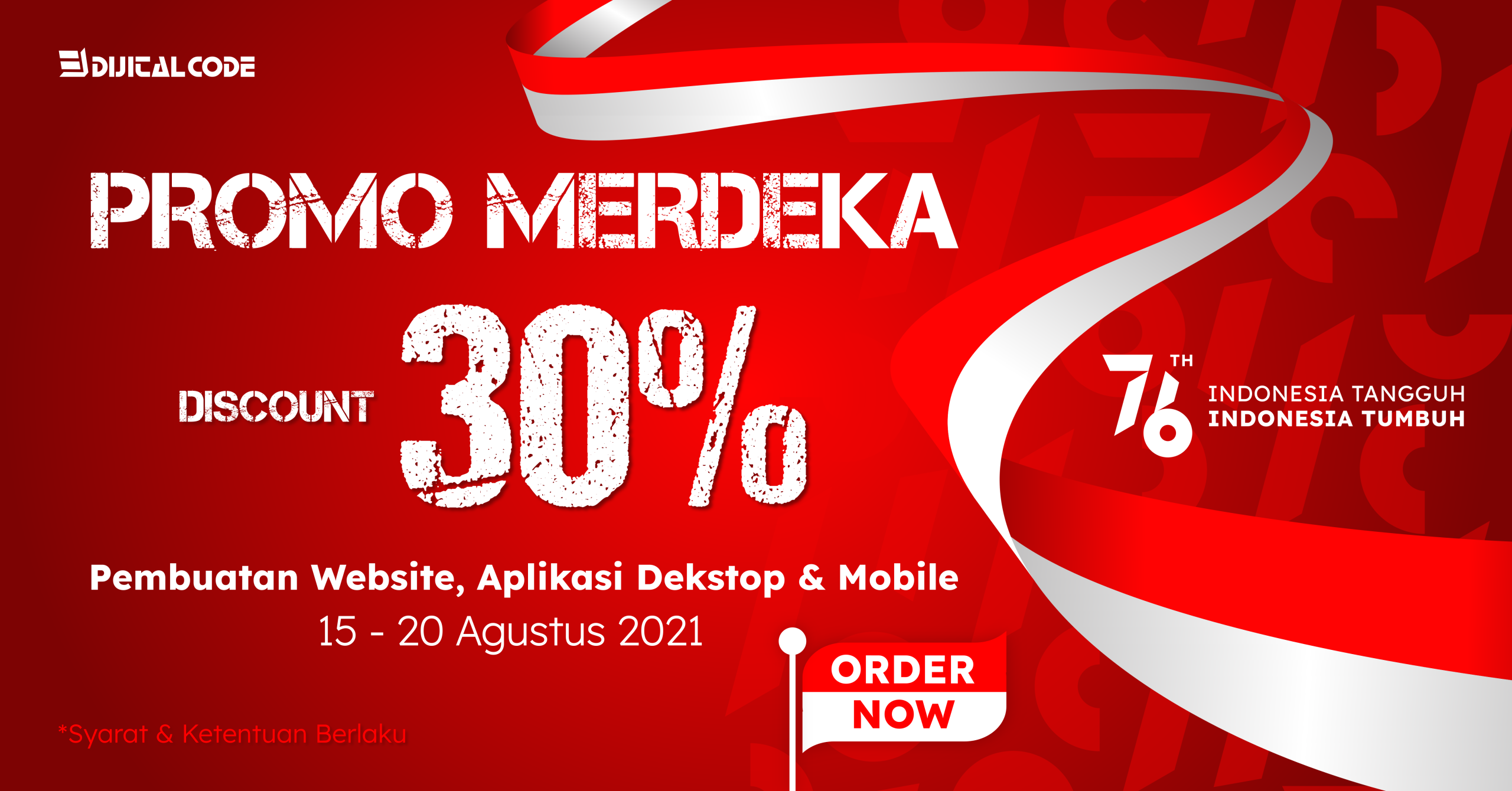 Dalam rangka memperingati Hari Kemerdekaan Republik Indonesia ke-80, Pixeloon memberikan penawaran spesial: Diskon 30% untuk semua layanan desain digital.